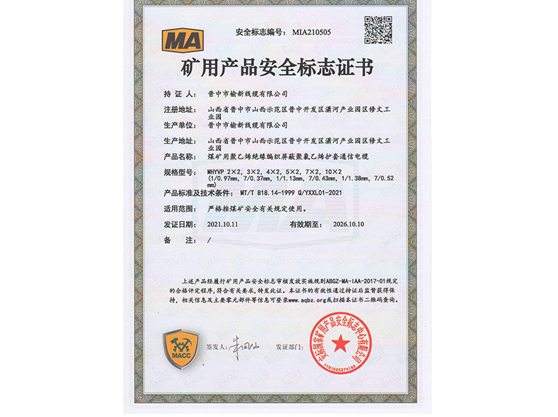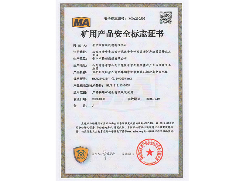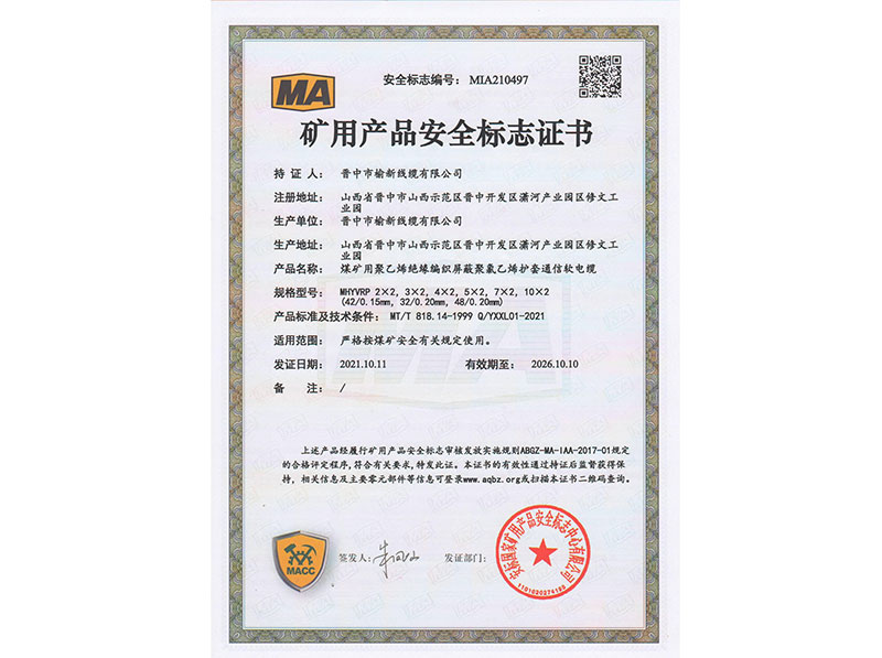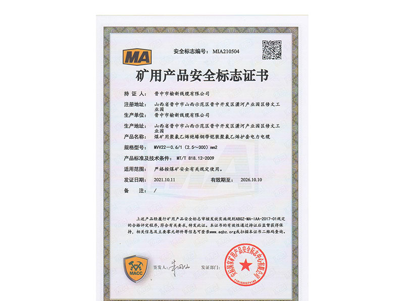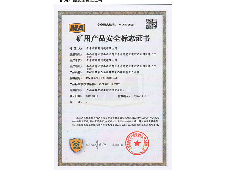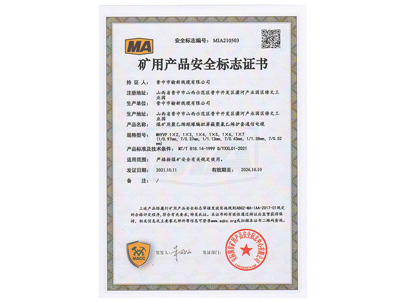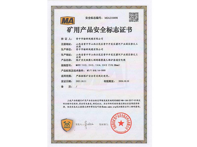 矿用产品安全标志证书10