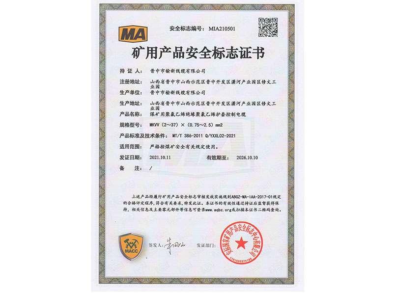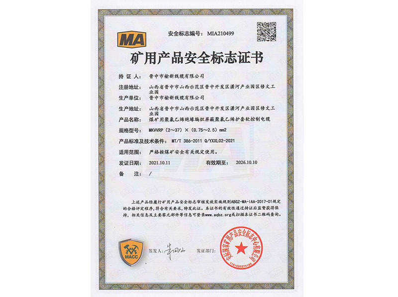 矿用产品安全标志证书11